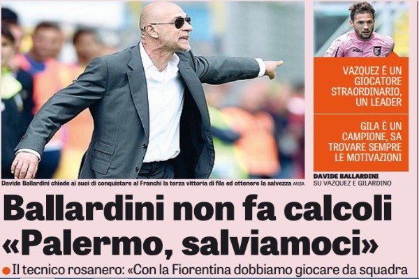 Secondo quanto riportato dall'edizione odierna de "La Gazzetta dello Sport", il tecnico del Palermo, Davide Ballardini, questo pomeriggio contro la...