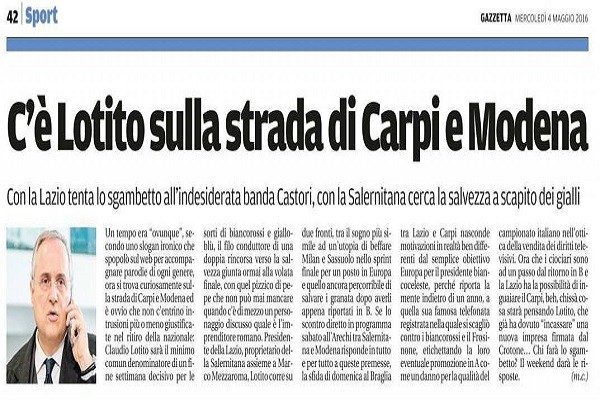 Gazzetta di Modena: “C’è Lotito sulla strada di Carpi e Modena”