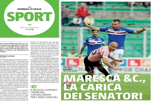 Queste le prime pagine dei principali quotidiani sportivi nazionali di oggi, mercoledì 4 maggio 2016.