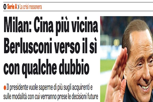 "Porte aperte ai cinesi. C’è aria di sì ad una trattativa in esclusiva con la cordata rappresentata da Sal Galatioto....