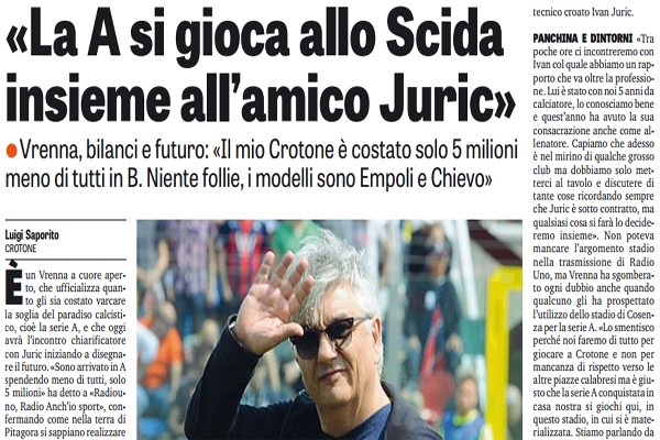 "È un Vrenna a cuore aperto, che ufficializza quanto gli sia costato varcare la soglia del paradiso calcistico, cioè la...