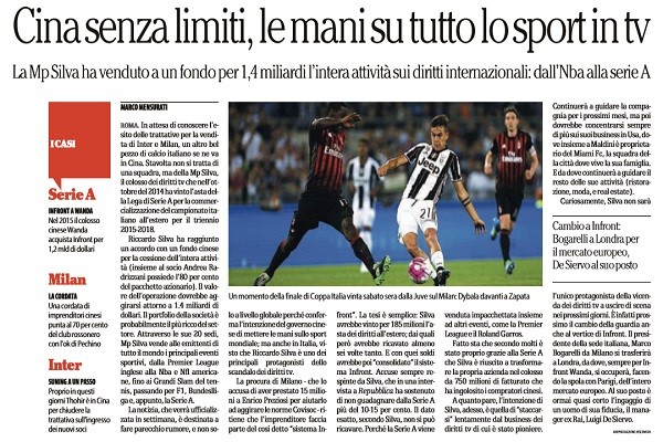 "In attesa di conoscere l’esito delle trattative per la vendita di Inter e Milan, un altro bel pezzo di calcio...