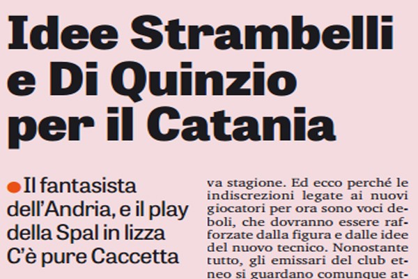 "Il nome del tecnico? Dopo i colloqui tra il Catania e Moriero, che serviranno a disimpegnare l’allenatore leccese al di...