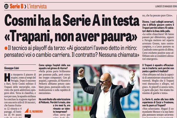 "Ha riscoperto il piacere di stupire, come ai tempi del Perugia. Dopo il successo a Bari, Serse Cosmi esibisce il...