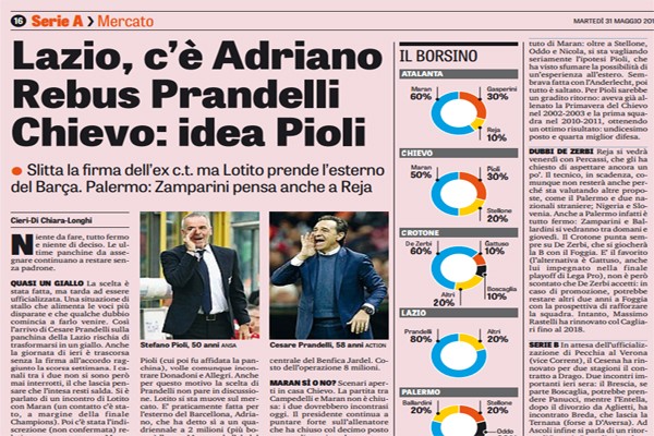Queste le prime pagine dei principali quotidiani sportivi nazionali di oggi, martedì 31 maggio 2016.