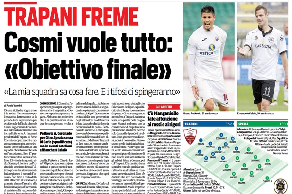 Corriere dello Sport: “Cosmi vuole tutto: «Obiettivo finale. La mia squadra sa cosa fare e i tifosi ci spingeranno»”