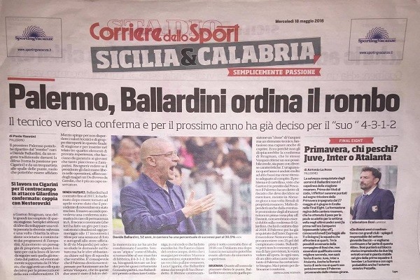“Il prossimo Palermo potrebbe ripartire dal ‘rombo’ caro a Davide Ballardini, da un registra tradizionale davanti la difesa e da...