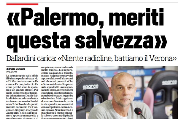 "La strana coppia cui si affida il Palermo per la salvezza. «Io e Di Marzio siamo come Ficarra e Picone,...
