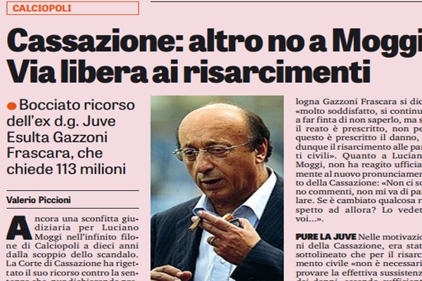 "Ancora una sconfitta giudiziaria per Luciano Moggi nell’infinito filone di Calciopoli a dieci anni dalla scoppio dello scandalo. La Corte...