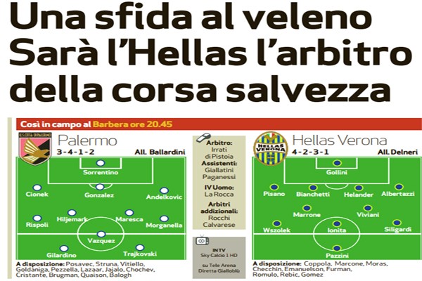 Match decisivo al "Barbera" quello tra Palermo ed Hellas Verona. Per il match più importante della stagione, il tecnico dei...