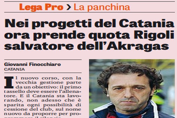 "Il nuovo corso, con la vecchia gestione parte da un obiettivo: il primo tassello deve essere l’allenatore. E il Catania...