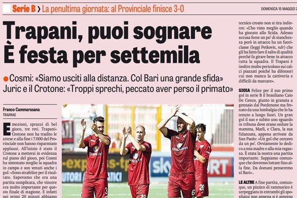 "Emozioni, sprazzi di bel gioco, tre reti. Trapani-Crotone non ha tradito le attese e alla fine i 7.000 del Provinciale...