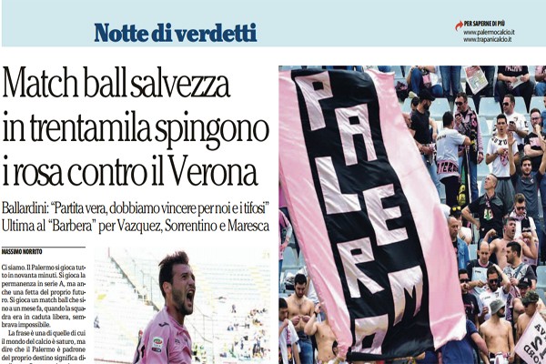 "Ci siamo. Il Palermo si gioca tutto in novanta minuti. Si gioca la permanenza in serie A, ma anche una...
