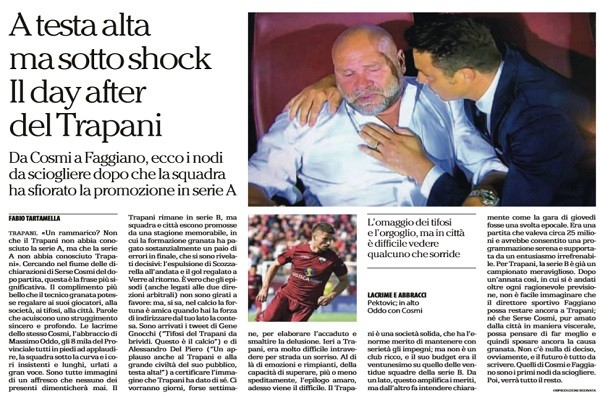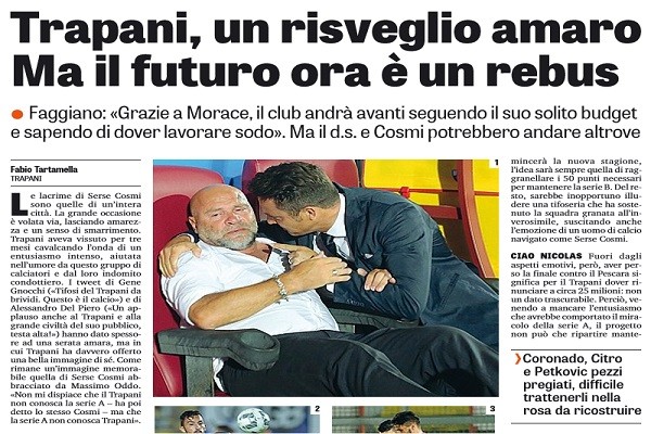Gazzetta dello Sport: “Trapani, un risveglio amaro. Ma il futuro ora è un rebus”