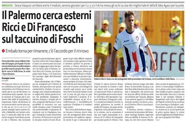 Stando a quanto si legge sull'edizione odierna de "La Voce di Romagna" il Palermo sarebbe disposto a spendere circa 2...