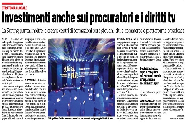 Corriere dello Sport: “Non solo Inter, la Suning punta anche ad investimenti sui procuratori e i diritti tv…”