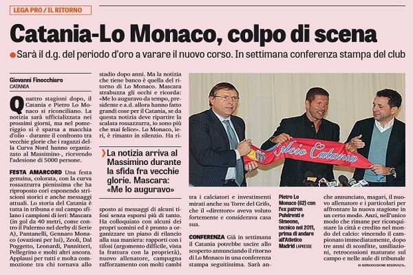 "Quattro stagioni dopo, il Catania e Pietro Lo Monaco si riconciliano. La notizia sarà ufficializzata nei prossimi giorni, ma nel...