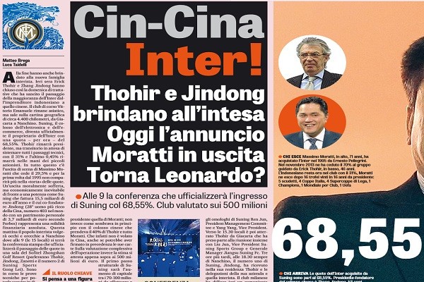 "Alla fine hanno anche brindato alla nuova famiglia interista. Ieri sera Erick Thohir e Zhang Jindong hanno chiuso così la...