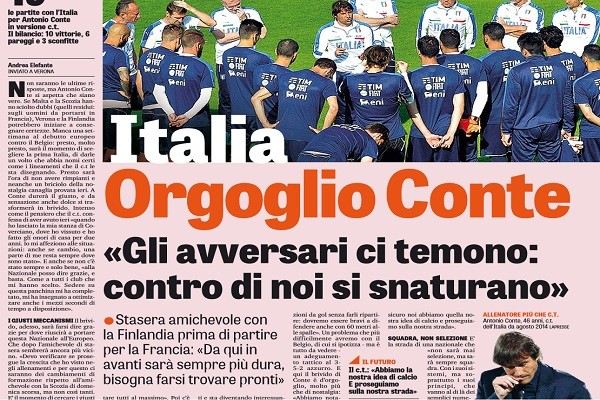 Queste le prime pagine dei principali quotidiani sportivi nazionali di oggi, lunedì 6 giugno 2016.