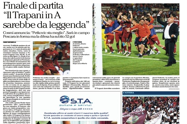 Repubblica: “Finale di partita, Cosmi: «Il Trapani in A sarebbe leggenda!». Pronti i maxi schermi in città…”