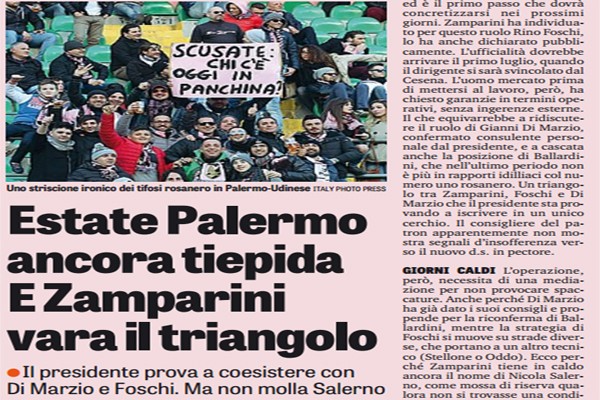 "C’è un presente e un futuro. L’attualità parla di un Palermo che Zamparini sta cercando di riorganizzare partendo dalla figura...