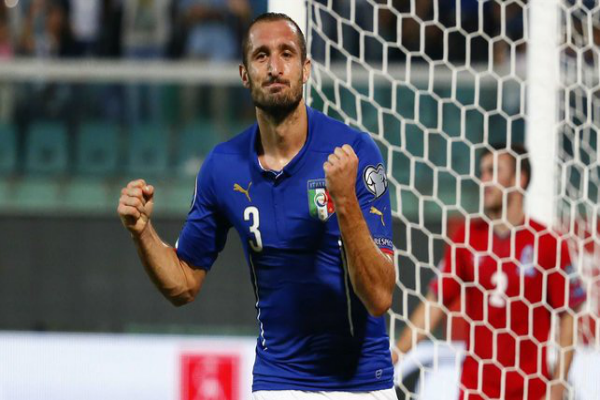 E' Giorgio Chiellini che sblocca il match Italia-Spagna, colpendo la ribattuta sulla punizione di Eder. Azzurri in vantaggio al 33'...