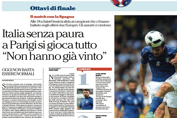 Queste le prime pagine dei principali quotidiani sportivi nazionali di oggi, luned' 27 giugno 2016.