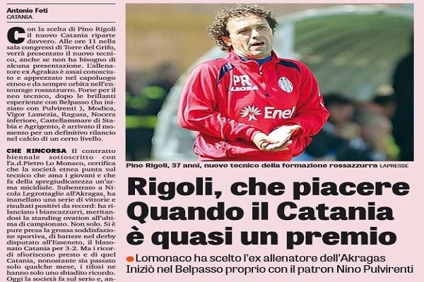 "Con la scelta di Pino Rigoli il nuovo Catania riparte davvero. Alle ore 11 nella sala congressi di Torre del...