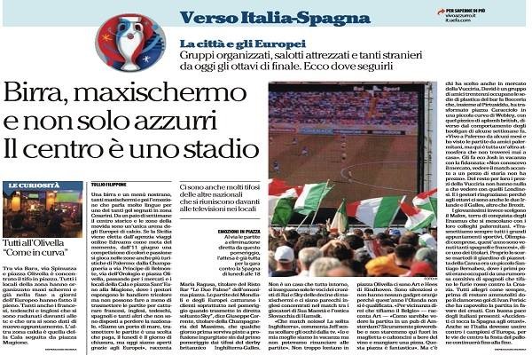 Repubblica: “Verso Italia-Spagna. Birra, maxischermo e non solo azzurri. Il centro è uno stadio”