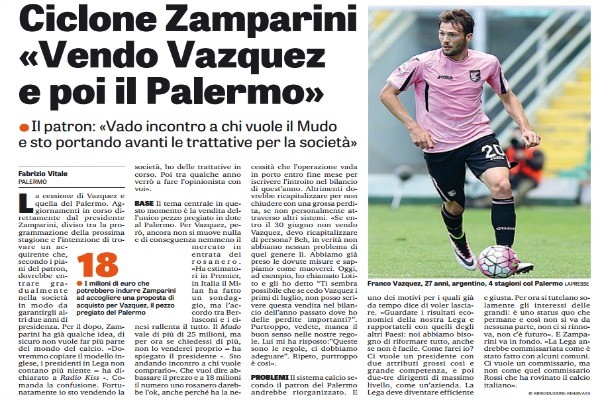 "La cessione di Vazquez e quella del Palermo. Aggiornamenti in corso direttamente dal presidente Zamparini, diviso tra la programmazione della...
