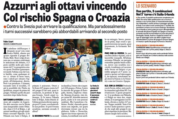 Queste le prime pagine dei principali quotidiani sportivi nazionali di oggi, giovedì 16 giugno 2016.