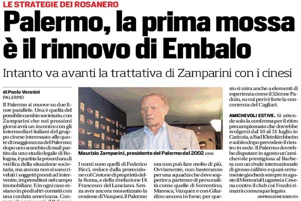 Corriere dello Sport: “Palermo, la prima mossa è il rinnovo di Embalo. Intanto Zamparini continua a trattare con i cinesi…”