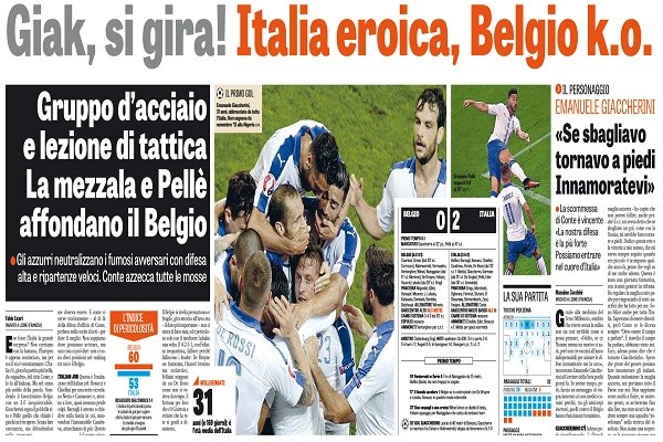 Queste le prime pagine dei principali quotidiani sportivi nazionali di oggi, martedì 14 giugno 2016.