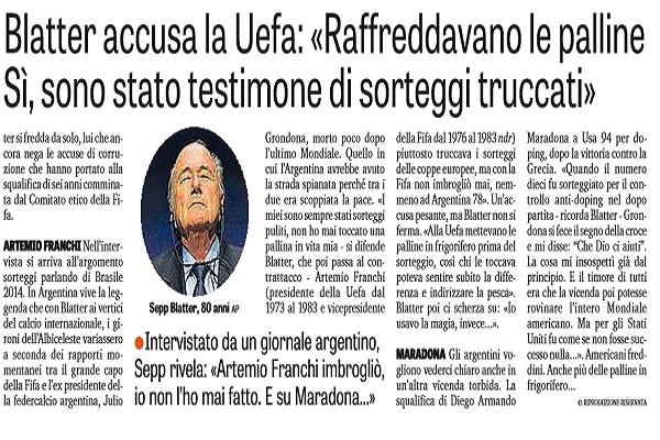 "«Palline in frigorifero». L’ex presidente della Fifa Sepp Blatter scongela la memoria e al quotidiano argentino La Nacion serve una...