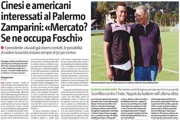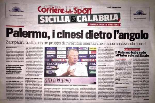 Corriere dello Sport: “Cinesi o no, Zamparini vuole un Palermo competitivo. Duda e Padoin le nuove idee”