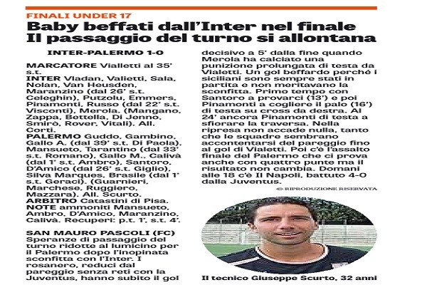 Gazzetta dello Sport: “U17, baby beffati dall’Inter nel finale. Il passaggio del turno si allontana”