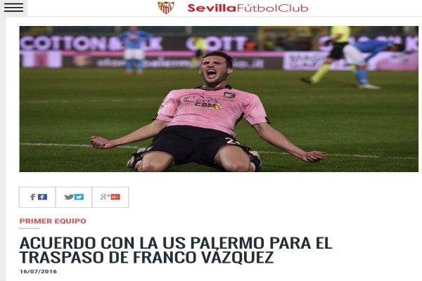 Ecco quanto riporta il sito ufficiale del Siviglia su Franco Vazquez e sulla possibilità di scendere in campo con il...