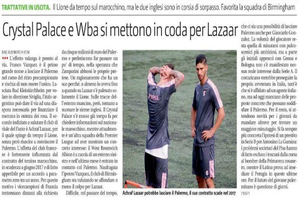Il presidente del Palermo Maurizio Zamparini ha parlato di Vazquez e Lazaar direttamente dal ritiro di Bad Kleinkirchheim, dove è arrivato in...