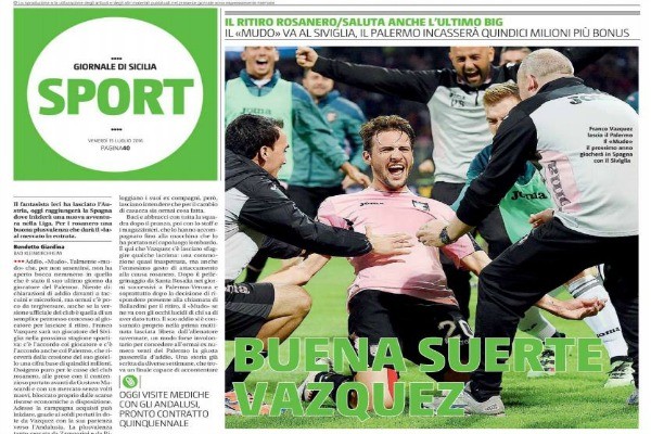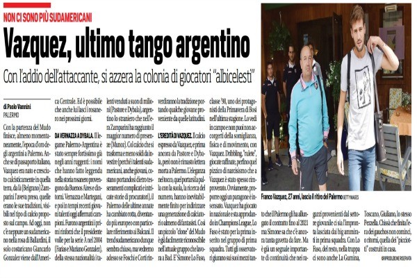 "Con la partenza del Mudo finisce, almeno momentaneamente, l'epoca d'oro degli argentini a Palermo. Anche se di passaporto italiano, Vazquez...