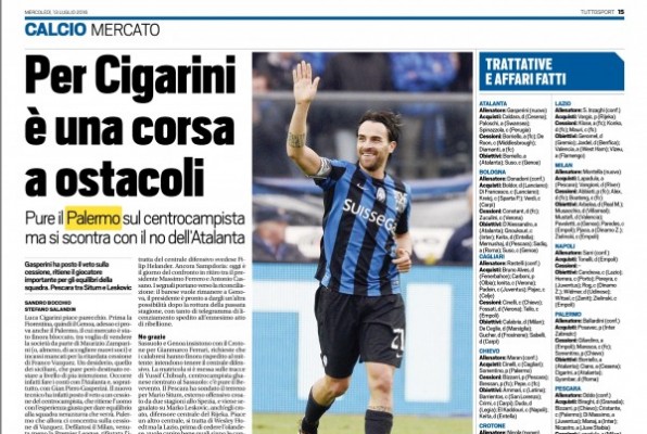 "Luca Cigarini piace parecchio. Prima la Fiorentina, quindi il Genoa, adesso ci prova anche il Palermo, il cui mercato è...