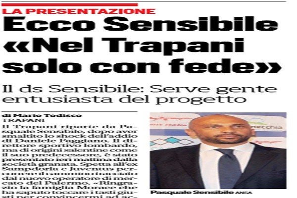 "Il Trapani riparte da Pasquale Sensibile, dopo aver smaltito lo shock dell’addio di Daniele Faggiano. Il direttore sportivo lombardo, ma...