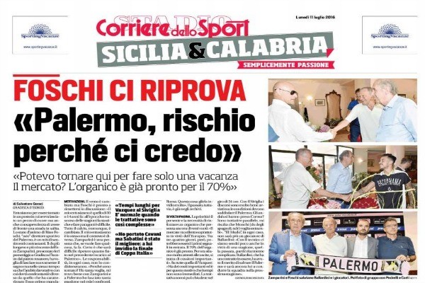 Corriere dello Sport: “Foschi ci riprova: «Palermo, rischio perché ci credo. Mercato? L’organico è già pronto per il 70%»”