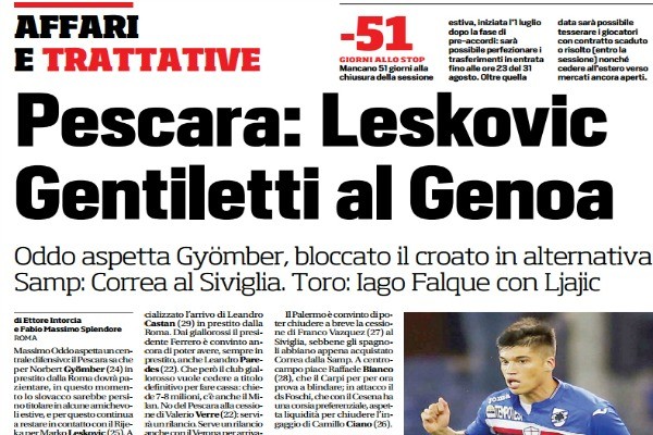 "Massimo Oddo aspetta un centrale difensivo: il Pescara sa che per Norbert Gyömber (24) in prestito dalla Roma dovrà pazientare,...