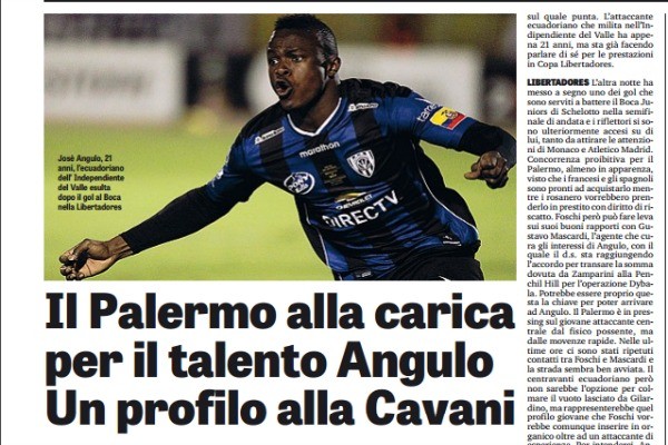 "Il Palermo spera di portarlo in Sicilia. José Angulo è il nuovo pallino di Rino Foschi che vuole ripresentarsi ai...