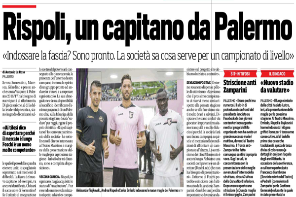 "Senza Sorrentino, Maresca, Gilardino e presto anche senza Vazquez, il Palermo 2016/17 ha bisogno di nuovi punti di riferimento. Di...