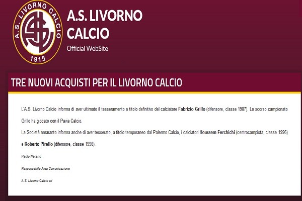 Dopo l'ufficialità data dal Palermo, anche il Livorno sul proprio sito ufficiale annuncia l'acquisto di Pirrello e Ferchichi. Di seguito...