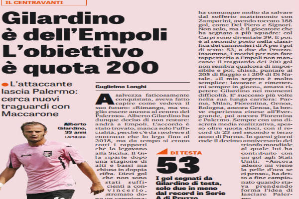 Alberto Gilardino è a un passo dall'Empoli ed il Palermo cerca un suo sostituto. Il profilo giusto potrebbe essere quello...