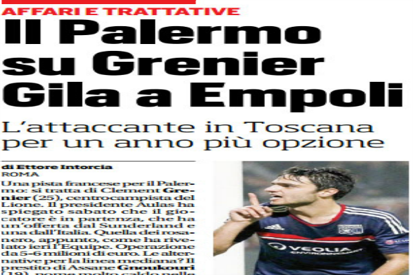 "Una pista francese per il Palermo: si tratta di Clement Grenier (25), centrocampista del Lione. Il presidente Aulas ha spiegato...