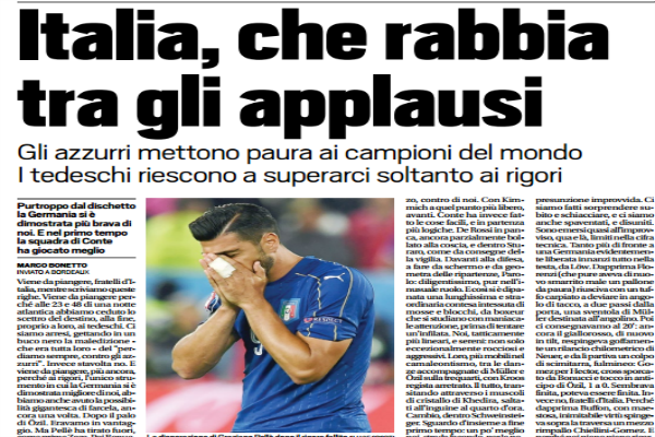 "Viene da piangere, fratelli d'Italia, mentre scriviamo queste righe. Viene da piangere perché alle 23 e 48 di una notte...