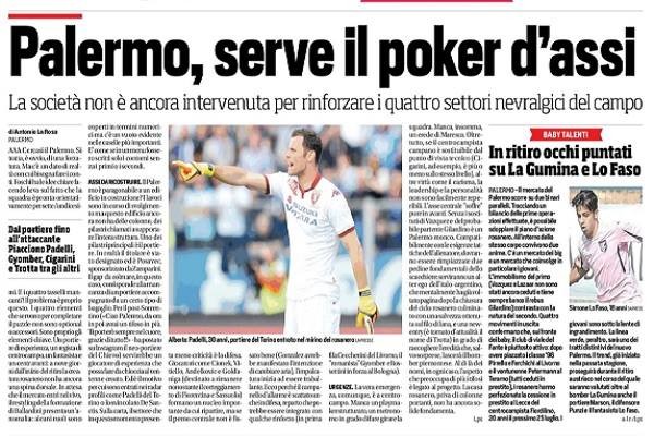 "A centrocampo, invece, tutto fermo per quanto riguarda Luca Cigarini. Il Palermo starebbe valutando anche altre ipotesi, tra cui quella...